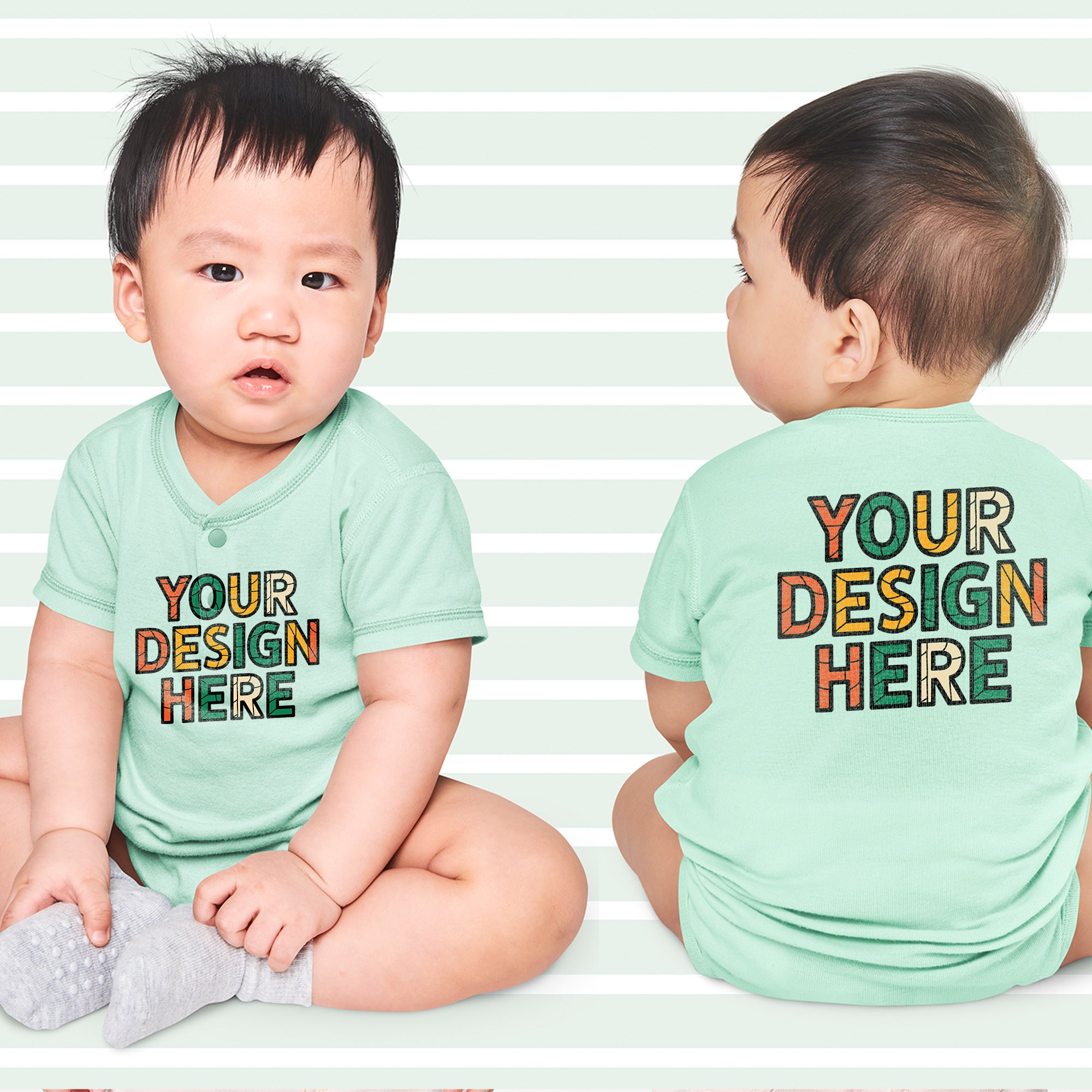 Transform the Bella + Canvas 100B Infant Jersey Short-Sleeve One-Piece into a unique masterpiece! This adorable onesie is the ideal canvas for creating custom and eye-catching DTF (Direct-to-Film) designs for your little ones.