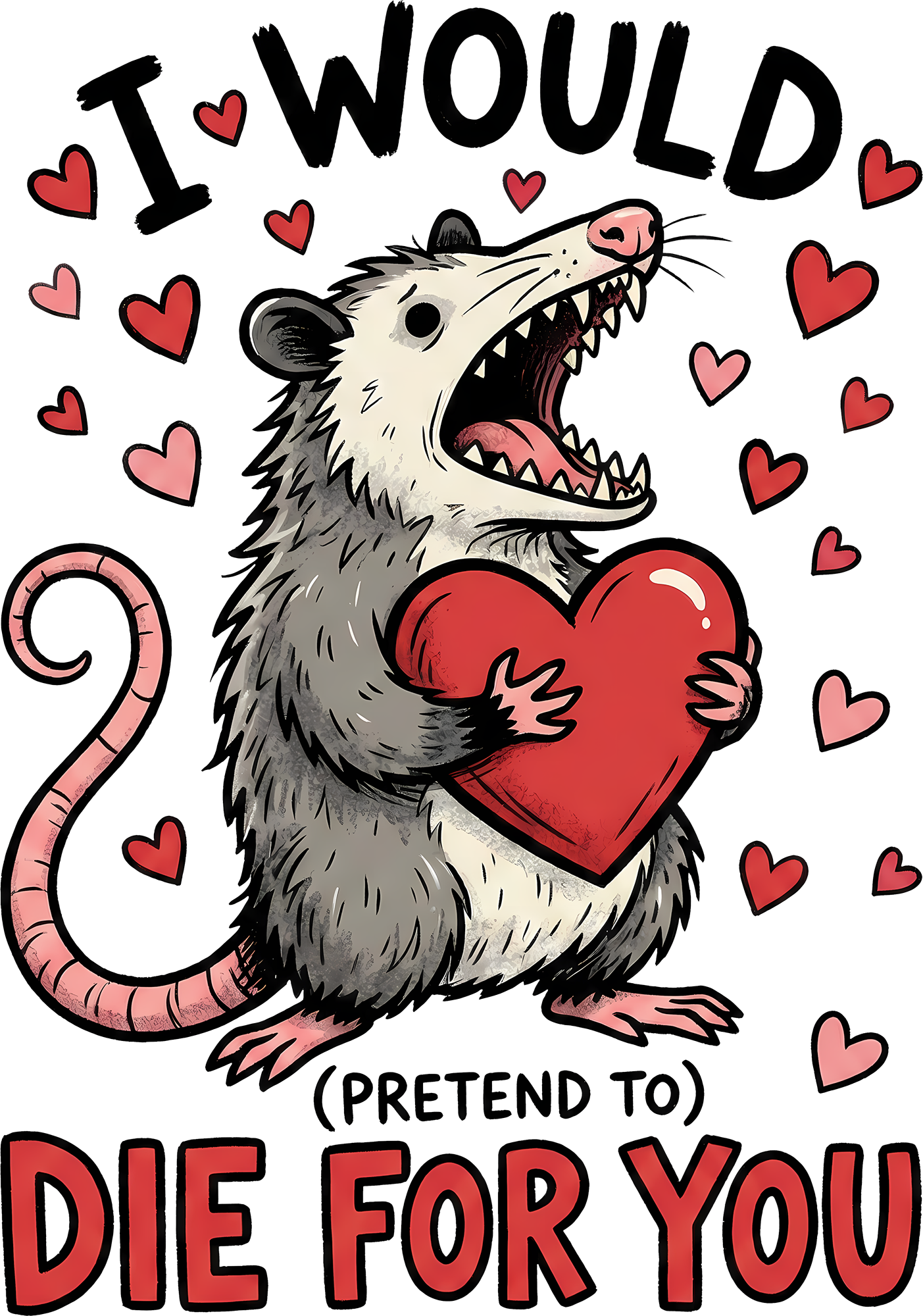Valentine Day Possum I Would Die For You - Valentines Day Ready to Press DTF Transfer